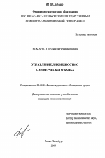Управление ликвидностью коммерческого банка тема диссертации по экономике, полный текст автореферата