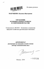 Управление муниципальным уровнем в современной России тема диссертации по экономике, полный текст автореферата