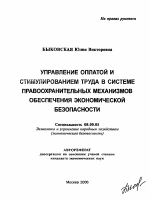 Управление оплатой и стимулированием труда в системе правоохранительных механизмов обеспечения экономической безопасности тема диссертации по экономике, полный текст автореферата
