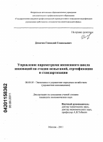 Управление параметрами жизненного цикла инноваций на стадии испытаний, сертификации и стандартизации тема диссертации по экономике, полный текст автореферата