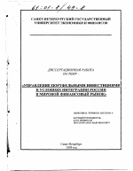 Управление портфельными инвестициями в условиях интеграции России в мировой финансовый рынок тема диссертации по экономике, полный текст автореферата