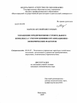УПРАВЛЕНИЕ ПРЕДПРИЯТИЯМИ СТРОИТЕЛЬНОГО КОМПЛЕКСА С УЧЕТОМ ВЛИЯНИЯ ОРГАНИЗАЦИОННО-ЭКОНОМИЧЕСКИХ ФАКТОРОВ