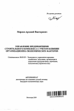 Управление предприятиями строительного комплекса с учетом влияния организационно-экономических факторов тема диссертации по экономике, полный текст автореферата