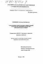 Диссертация: введение по экономике, на тему "Управление привлечением инвестиций в малое предпринимательство при переходе к рынку"