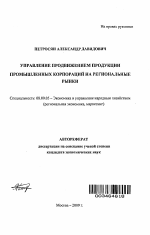 Автореферат диссертации по теме "Управление продвижением продукции промышленных корпораций на региональные рынки"