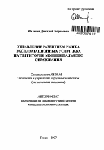 Управление развитием рынка эксплуатационных услуг ЖКХ на территории муниципального образования тема диссертации по экономике, полный текст автореферата