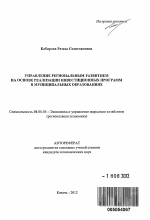 Управление региональным развитием на основе реализации инвестиционных программ в муниципальных образованиях тема диссертации по экономике, полный текст автореферата