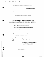 Управление рисками в системе экологической безопасности региона тема диссертации по экономике, полный текст автореферата