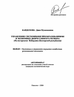 УПРАВЛЕНИЕ СИСТЕМНЫМИ ПРЕОБРАЗОВАНИЯМИ В ЭКОНОМИКЕ ДЕПРЕССИВНОГО РЕГИОНА (На материалах Кабардино-Бакарской республики)