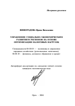Управление социально-экономическим развитием регионов на основе оптимизации налоговых нагрузок тема диссертации по экономике, полный текст автореферата