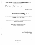 Диссертация: введение по экономике, на тему "Управление территориальной экономической интеграцией в условиях перехода к рынку"