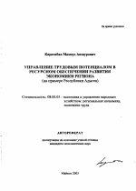 Автореферат диссертации по теме "Управление трудовым потенциалом в ресурсном обеспечении развития экономики региона"
