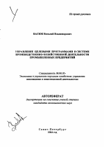 Управление целевыми программами в системе производственно-хозяйственной деятельности промышленных предприятий тема диссертации по экономике, полный текст автореферата