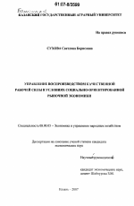 Управление воспроизводством качественной рабочей силы в условиях социально-ориентированной рыночной экономики тема диссертации по экономике, полный текст автореферата