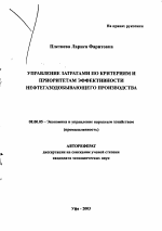 Управление затратами по критериям и приоритетам эффективности нефтегазодобывающего производства тема диссертации по экономике, полный текст автореферата