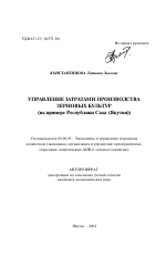 УПРАВЛЕНИЕ ЗАТРАТАМИ ПРОИЗВОДСТВА ЗЕРНОВЫХ КУЛЬТУР (на примере Республики Саха (Якутия))