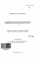 Условия и факторы конкурентоспособности регионов Центрального федерального округа тема диссертации по экономике, полный текст автореферата