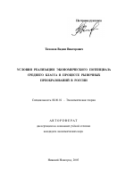 Автореферат диссертации по теме "Условия реализации экономического потенциала среднего класса в процессе рыночных преобразований в России"