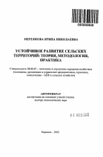 Автореферат диссертации по теме "Устойчивое развитие сельских территорий: теория, методология, практика"