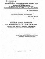 Автореферат диссертации по теме "ВАЛОВОЙ ДОХОД КОХОЗОВ, ЕГО ФОРМИРОВАНИЕ И РАСПРЕДЕЛЕНИЕ"