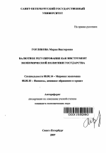 Автореферат диссертации по теме "Валютное регулирование как инструмент экономической политики государства"