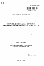Венчурный капитал как источник финансирования инновационного процесса тема диссертации по экономике, полный текст автореферата