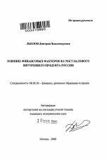Влияние финансовых факторов на рост валового внутреннего продукта России тема диссертации по экономике, полный текст автореферата