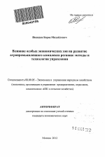Влияние особых экономических зон на развитие агропромышленного комплекса региона: методы и технологии управления тема диссертации по экономике, полный текст автореферата