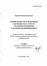Влияние процессов трансформации собственности на структуру управления предприятием в постприватизационный период тема диссертации по экономике, полный текст автореферата