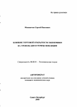 Влияние торговой открытости экономики на уровень цен и темпы инфляции тема диссертации по экономике, полный текст автореферата