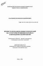 Влияние транснациональных корпораций на структурные нарушения в странах с переходной экономикой тема диссертации по экономике, полный текст автореферата