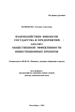 Взаимодействие финансов государства и предприятий: анализ общественной эффективности инвестиционных проектов тема диссертации по экономике, полный текст автореферата