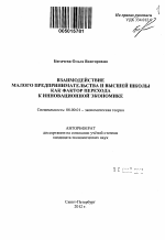 Взаимодействие малого предпринимательства и высшей школы как фактор перехода к инновационной экономике тема диссертации по экономике, полный текст автореферата