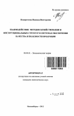 Взаимодействие методов хозяйствования и институциональных структур в системах обеспечения качества и полезности продукции тема диссертации по экономике, полный текст автореферата
