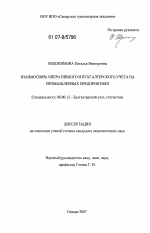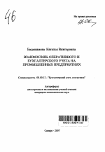Взаимосвязь оперативного и бухгатерского учета на промышленных предприятиях тема диссертации по экономике, полный текст автореферата