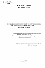 Юридические основы новых трудовых правоотношений в России: закон и право тема диссертации по экономике, полный текст автореферата
