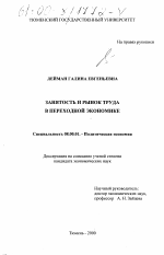 Занятость и рынок труда в переходной экономике тема диссертации по экономике, полный текст автореферата