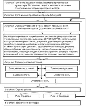 На современном этапе развития экономических отношений становится все более актуальным вопрос о выборе предприятия-аутсорсера по оказанию услуг на основе аутсорсинга. Стратегия выбора аутсорсера включает шесть этапов (рис. 15.1).