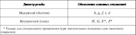 Второе предельное отклонение определяют по принятой степени точности резьбы (е = ех - /Т/; е = ех - /Т/,; £5 = £/ + /ТО,; £5 = Е + /ТТЛ). Сочетание основного отклонения, обозначаемое буквой, с допуском по принятой степени точности образует поле допуска.