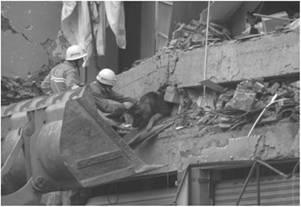 Рис. 9.2. Спасение людей из-под завала каркасного здания спасательными отрядами