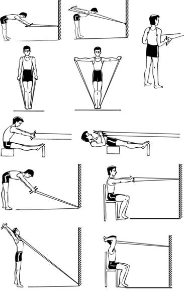 Рис. 13.1.10. Комплекс упражнений с амортизатором для исправления крыловидных лопаток