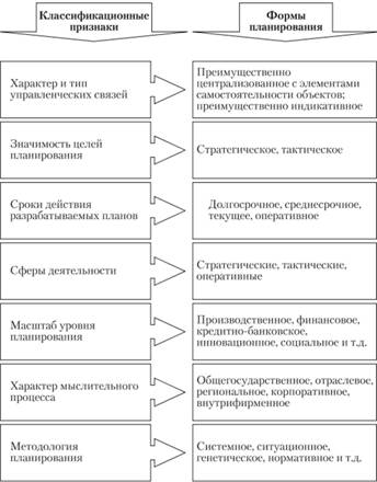 Существуют многочисленные формы планирования. Планирование охватывает в той или иной степени все сферы социально-экономической деятельности: научно-техническую, организационно-техническую, социально-экономическую, экологическую, финансовую и т.д. Формы планирования обусловлены как сферой деятельности, так и уровнем управления (общегосударственный, региональный уровни, уровень управления субъектами хозяйствования - предприятиями и организациями, их объединениями).