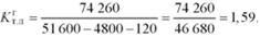 В рассматриваемом примере чистый оборотный капитал составил на начало года 54 540 - 32 180 = 22 360 тыс. руб.; на конец года 74 260 - 46 680 = 27 580 тыс. руб.