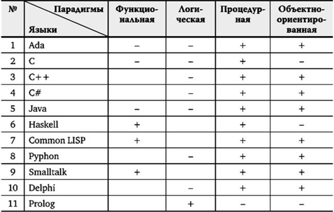 Таблица 4.6. Парадигмальность языков программирования