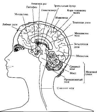 Головной мозг, в свою очередь, состоит из переднего, среднего и заднего мозга (рис. 2.1). Основная функция головного мозга - управляющая: обработка поступившей от периферии информации и выработка "команд" исполнительным органам.