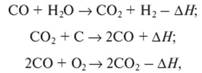 В дальнейшем двуокись углерода взаимодействует с углеродом с образованием оксида углерода с поглощением теплоты: