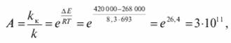 где k - константа скорости реакции; k0 - пред экспоненциальный множитель; Е - энергия активации; R - газовая постоянная; Т - абсолютная температура.