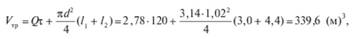 где τ - время автоматического отключения насоса, согласно табл. 5.24, принято равным 2мин (120 с), найдем объем нефти, поступившей в помещение насосной (с учетом вылива из насоса):