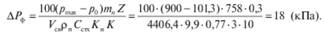 6. Избыточное давление во фронте ударной волны при взрыве паров нефти найдем по формуле (5.69), в которой дополнительно учтем уменьшение массы взрывоопасной смеси в результате работы аварийной вентиляции путем введения в знаменатель коэффициента К: