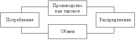 Если рассматривать непрерывно возобновляющийся процесс производства, то это – воспроизводство. Оно придает производству циклический характер, заставляя его двигаться в кругообороте “воспроизводственных” фаз (производство ® распределение ® обмен ® потребление).